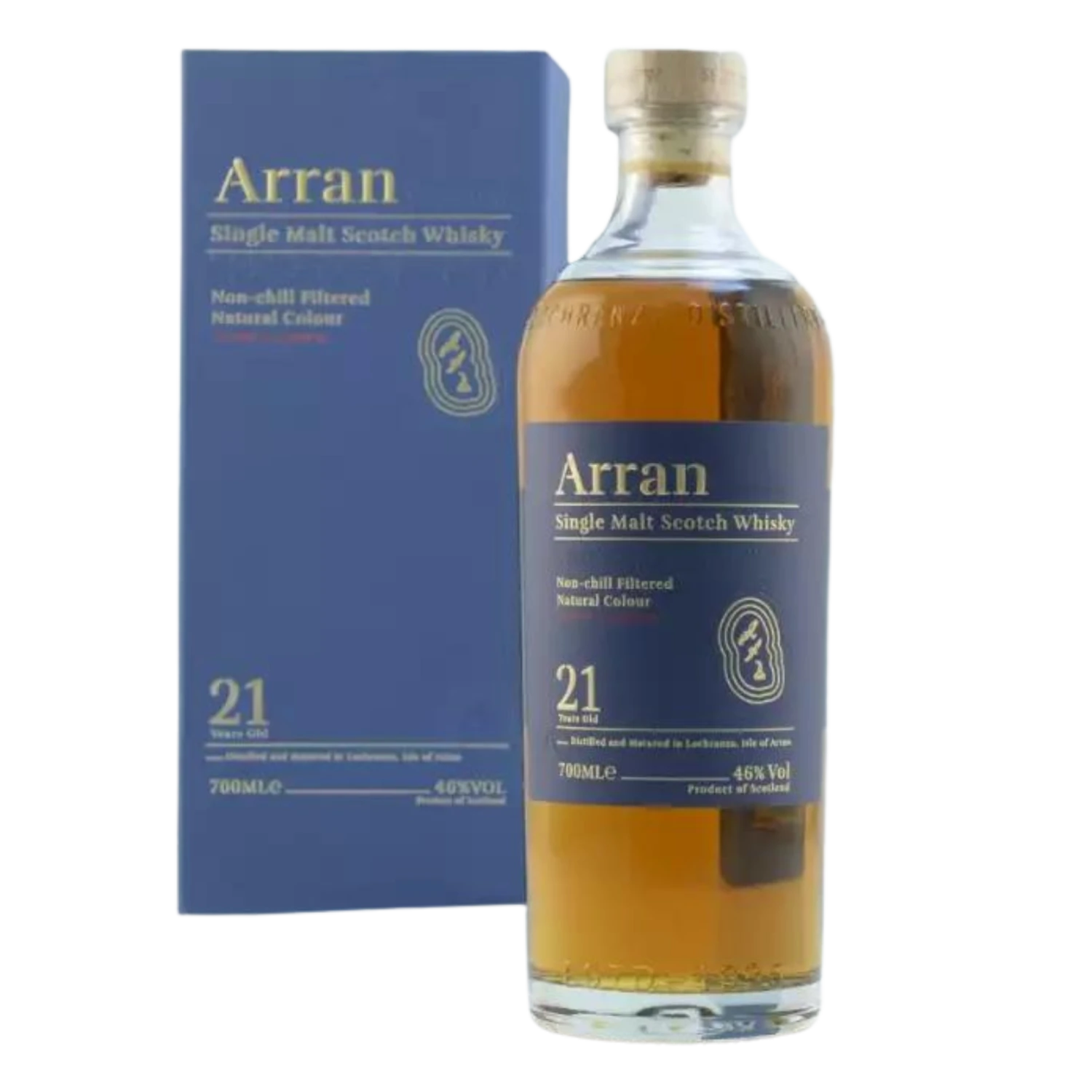 Der finessereiche Arran Malt 21 Jahre Island Whisky macht daraus keinen Hehl, dass er nach der Destillation aus Gerstenmalz in zwei verschiedenen Fasstypen reifen durfte. Er lagerte erst in klassischen Ex-Bourbonfässern aus amerikanischer Weißeiche, bevor er in spanische Sherryfässer umgefüllt wurde, um darin ein veredelndes Finishing zu erfahren. Der von zwei Fassarten beeinflusste Arran Malt 21 Jahre Island Whisky ist daher ein charaktervoller Inselwhisky voller Charisma. Er weist eine Farbe von Gold bis Bernstein auf und kommt im ersten neuen Batch in einer begrenzten Auflage von insgesamt 9.000 Flaschen auf den Markt. Der limitierte Island Whisky der Arran Distillery verlockt vor allem Fans.