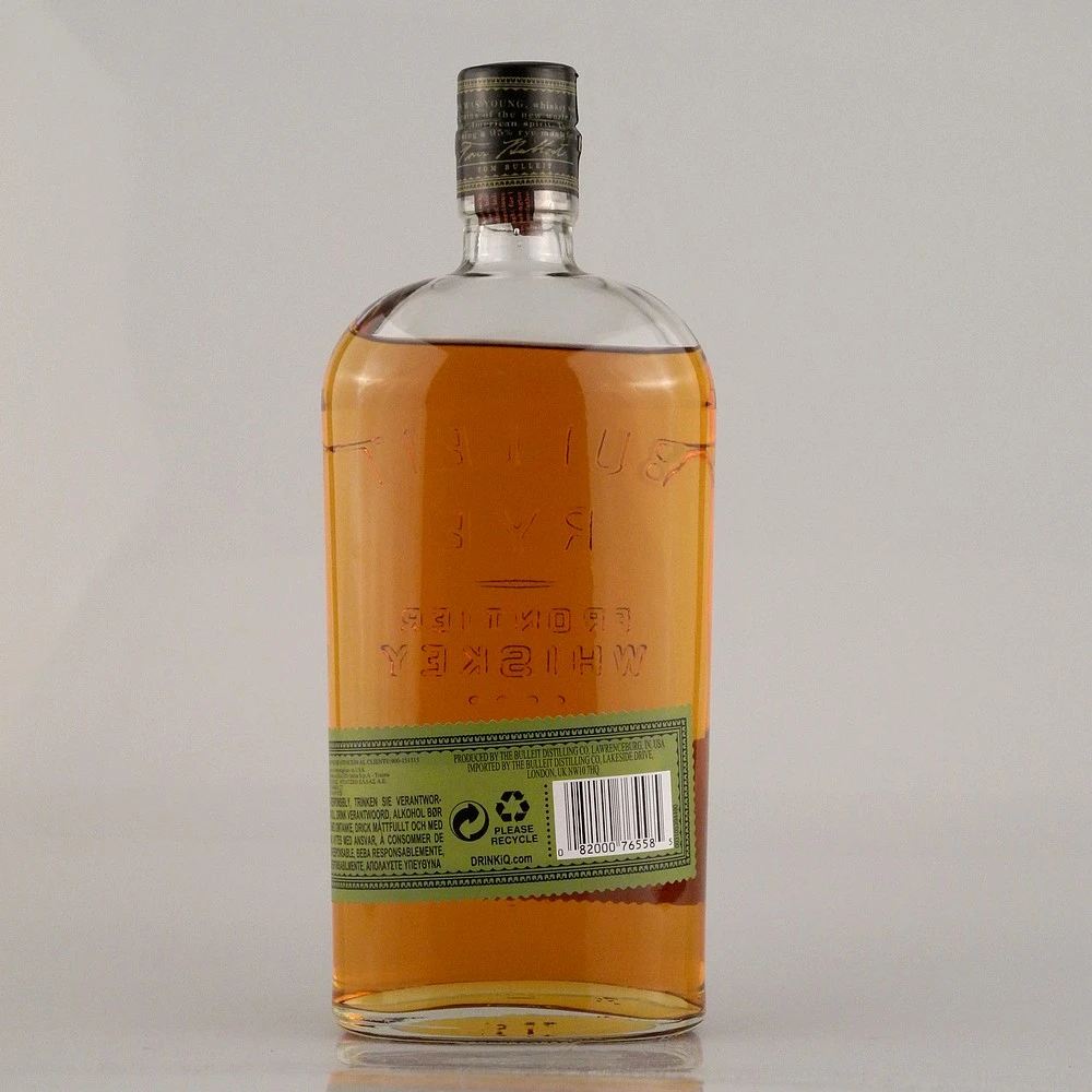 Bekannt ist der exzellente Bulleit Rye Whiskey für seine Komplexität und Würze, die ihn deutlich von seinem Bruder, dem Bourbon, abhebt. Der rötlich braune Roggenwhisky entfaltet ein Aroma von Holz und Gewürzen, das eindringlich und doch nicht aufdringlich ist. Tabak und Kirsche sorgen für noch mehr Faszination. Dem schließt sich ein charaktervoller Geschmack an, der es an Weichheit nicht fehlen lässt. Mit Vanille und Honig werden die würzigen Grundtöne aufgelockert. Das reine, frische Finish zeichnet den Premium-Whiskey genauso aus wie sein langer, angenehmer Nachklang und insgesamt seine hohe Qualität. Am besten trinkt man den Bulleit Rye Whiskey pur oder „on the rocks“.