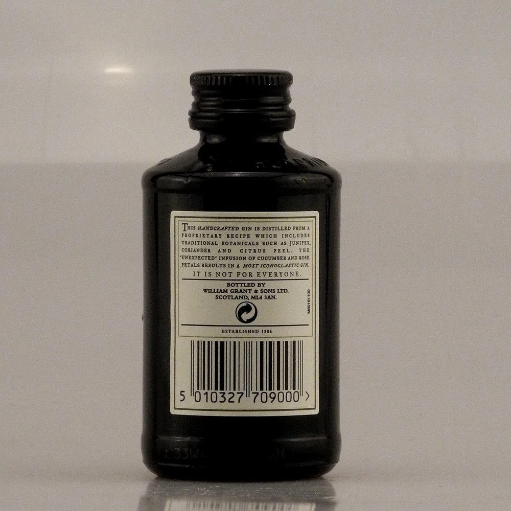 Der Hersteller vermarktet den Hendricks Gin Mini unter dem Slogan „No other gin tastes like Hendrick’s because no other gin is made like Hendrick’s.“ (übersetzt: „Kein anderer Gin schmeckt wie Hendrick’s, weil kein anderer Gin wie Hendrick’s hergestellt wird.“, und bringt damit auf den Punkt, wofür die Spirituose bekannt ist. Aroma und Geschmack lassen sich in der Tat nicht mit der Masse vergleichen und hinterlassen einen bleibenden Eindruck. Der Hendricks Gin Mini ist ein abwechslungsreiches Erlebnis für Gaumen und Nase, weshalb man ihm unvoreingenommen eine Chance geben sollte. In dieser Miniaturflasche mit 0,05 l Inhalt eignet er sich zum Kennenlernen und Verschenken. Seine Trinkstärke beträgt 44,0 % vol.